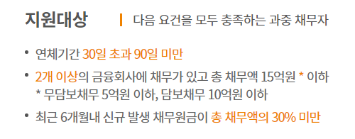 최소 2개 이상의 금융회사에 채무가 있고 총 채무액이 15억원 이하여야 합니다.